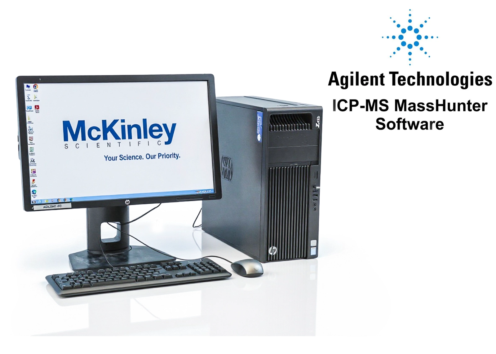Рабочий компьютер с монитором, клавиатурой и мышью.