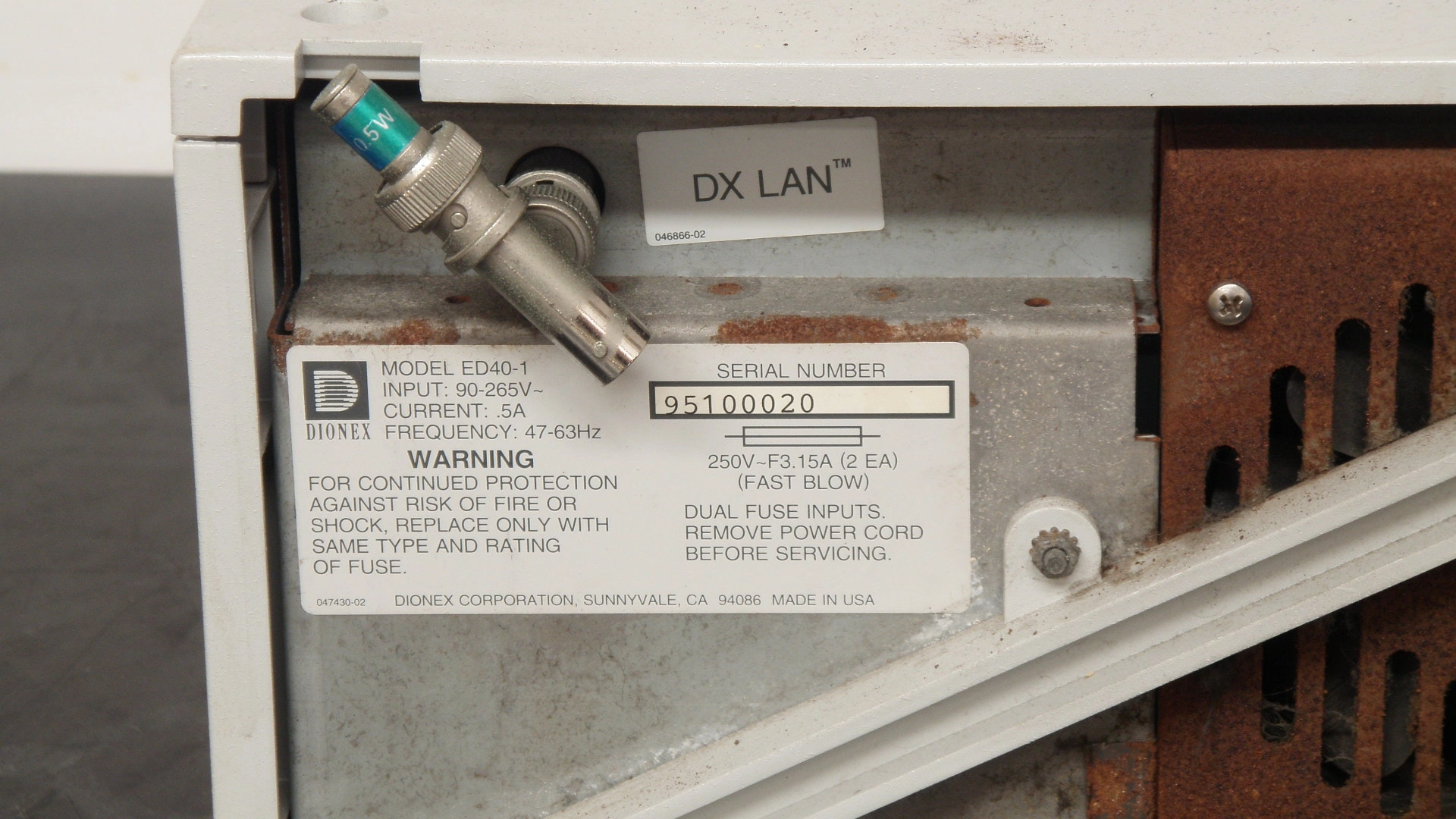 ID# 33823 Dionex ED40 Электрохимический детектор — Для запчастей или ремонта?? Этот детектор включается, мигает и издает щелкающий звук. Мы не можем протестировать его дальше.