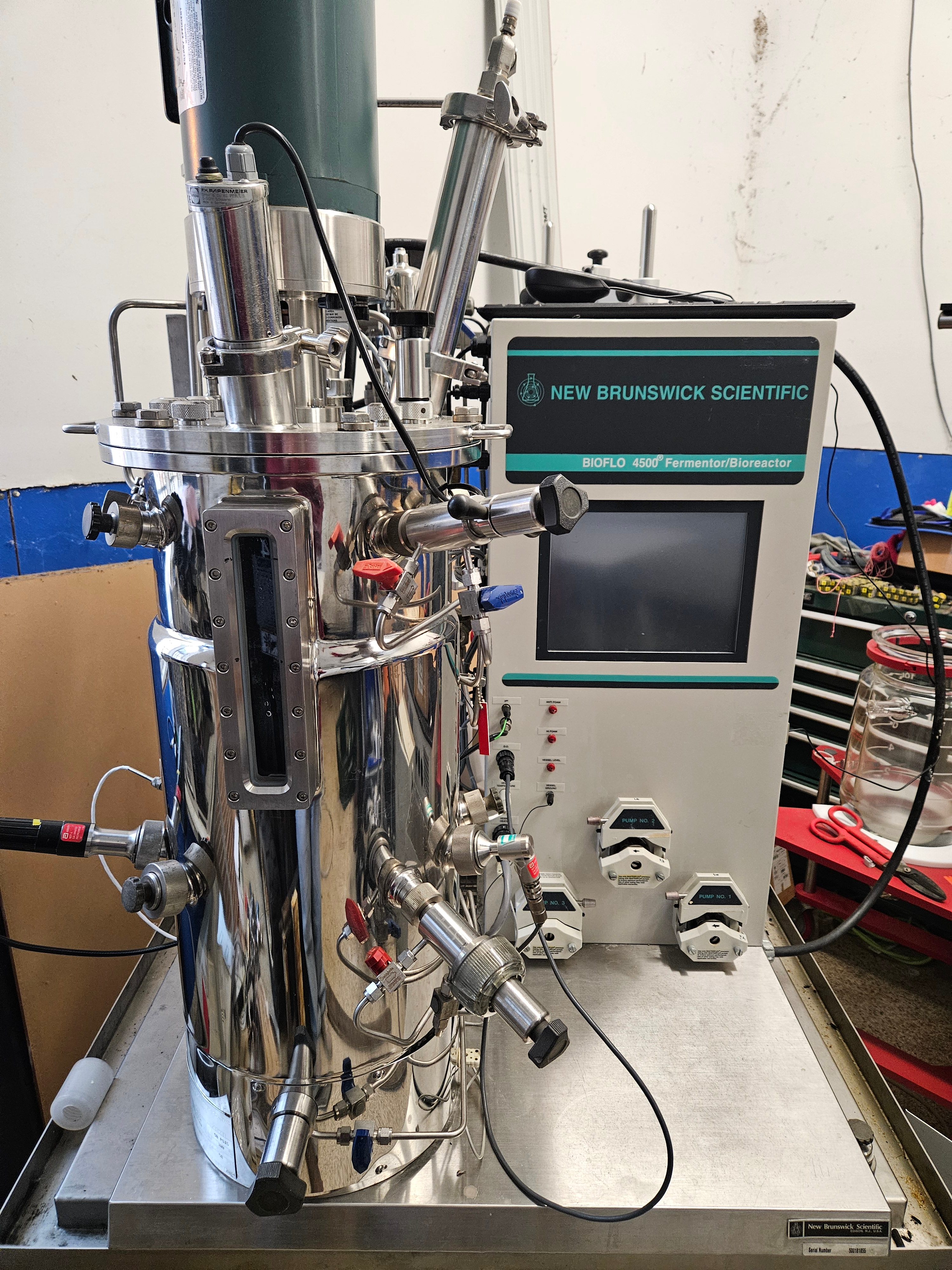Здесь у нас есть очень хороший ферментер Bioflo 4500. Устройство было полностью отремонтировано с новыми клапанами и уплотнениями, а также поставляется с множеством новых запасных частей, таких как уплотнения вала, зонды, комплекты для восстановления клапанов, новые клапаны и все виды о-колец, уплотнений и кабелей. Все, что вам нужно, чтобы поддерживать его работоспособность в течение следующих 20 лет. Устройство продается с годовой гарантией.