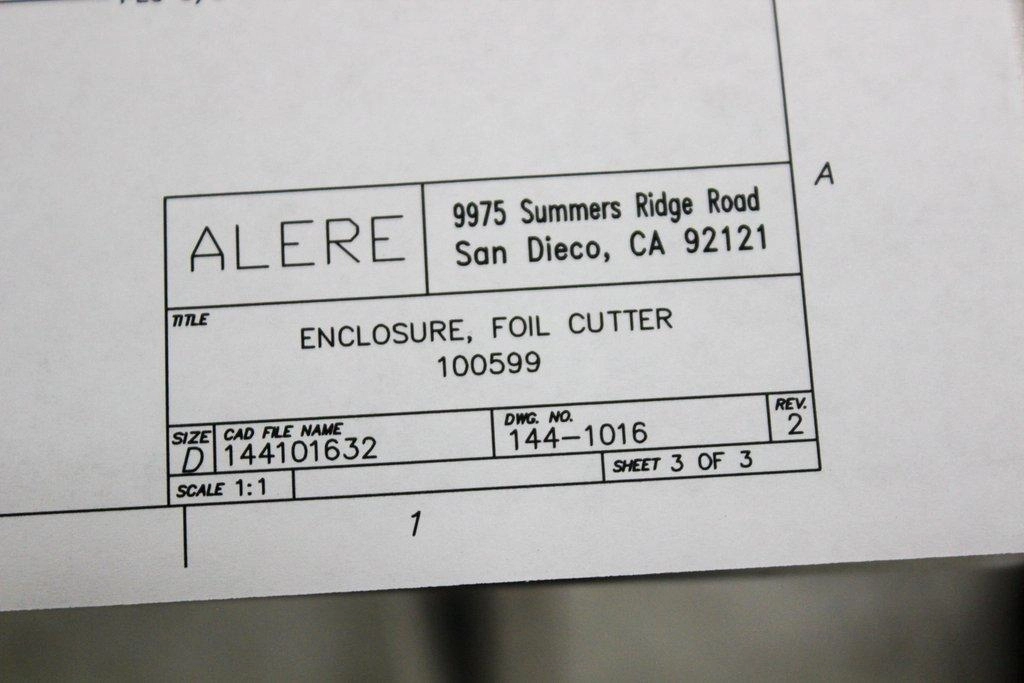 Product Information Introducing the Ridgeline Engineering 144-1016 Custom Foil Cutter, a robust and versatile machine designed for seamless integration into specific customer factory production processes. Manufactured in the United States in 2016, this model is engineered to enhance automation and precision in foil cutting applications. Known for its reliability, the 144-1016 powers on successfully and performs essential operational tests, despite being untested in complete capacity. With a 30-day warranty on parts, users have added confidence in its performance. Delivering a steady electrical supply at 120V and 60Hz, it ensures consistent operation tailored to industrial standards. Ideal for manufacturing environments, this device can greatly improve operational efficiency, although additional parts and accessories may be required to test fully. Please refer to the detailed photographs provided to ensure the equipment meets your specific needs. Technician comment This item Powers on and may need other parts and accessories to fully test. Custom foil cutter machine for specific customer factory production process. Buyer can expect same unit as pictures. See photos Key Features Custom design for factory production processes Engineered by Ridgeline Engineering Model 144-1016 with sub-model Alere Enclosure Foil Cutter 100599 Manufactured in 2016 in the USA Powers on successfully; untested fully Includes power cord Specifications Voltage: 120V Frequency: 60Hz Manufacture Date: November 1, 2016 Condition: G (Good) — displays minor cosmetic damage or wear from use Dimensions: 29″ L x 19″ W x 19″ H Weight: 57 lb Weight Imperial: 68.4 Pounds Metric: 31.03 Kilograms Shipping Dimensions Imperial: 34.8 lb x 22.8 lb x 22.8 lb Metric: 88.39 cm x 57.91 cm x 57.91 cm Harmonized Code 8479.89 Harmonized Code Details Harmonized Code 8479.89 denotes machines and mechanical appliances having individual functions, not specified elsewhere. This code is suitable for multi-purpose automate