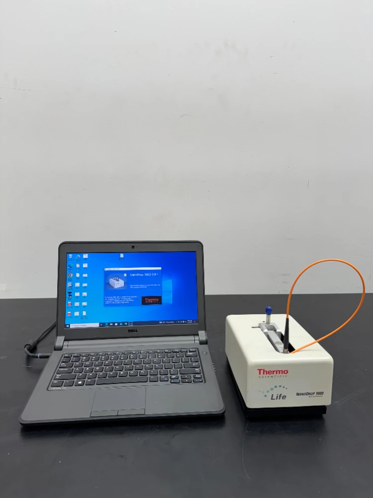 Спектрофотометр Thermo Nanodrop 1000 — это компактный, удобный в использовании UV-Vis спектрофотометр, предназначенный для быстрой и точной количественной оценки нуклеиновых кислот и белков с использованием минимальных объемов образцов. Включает в себя модуль источника света PerkinElmer RSL-2101 3N и настроен с ноутбуком для управления программным обеспечением и анализа данных.