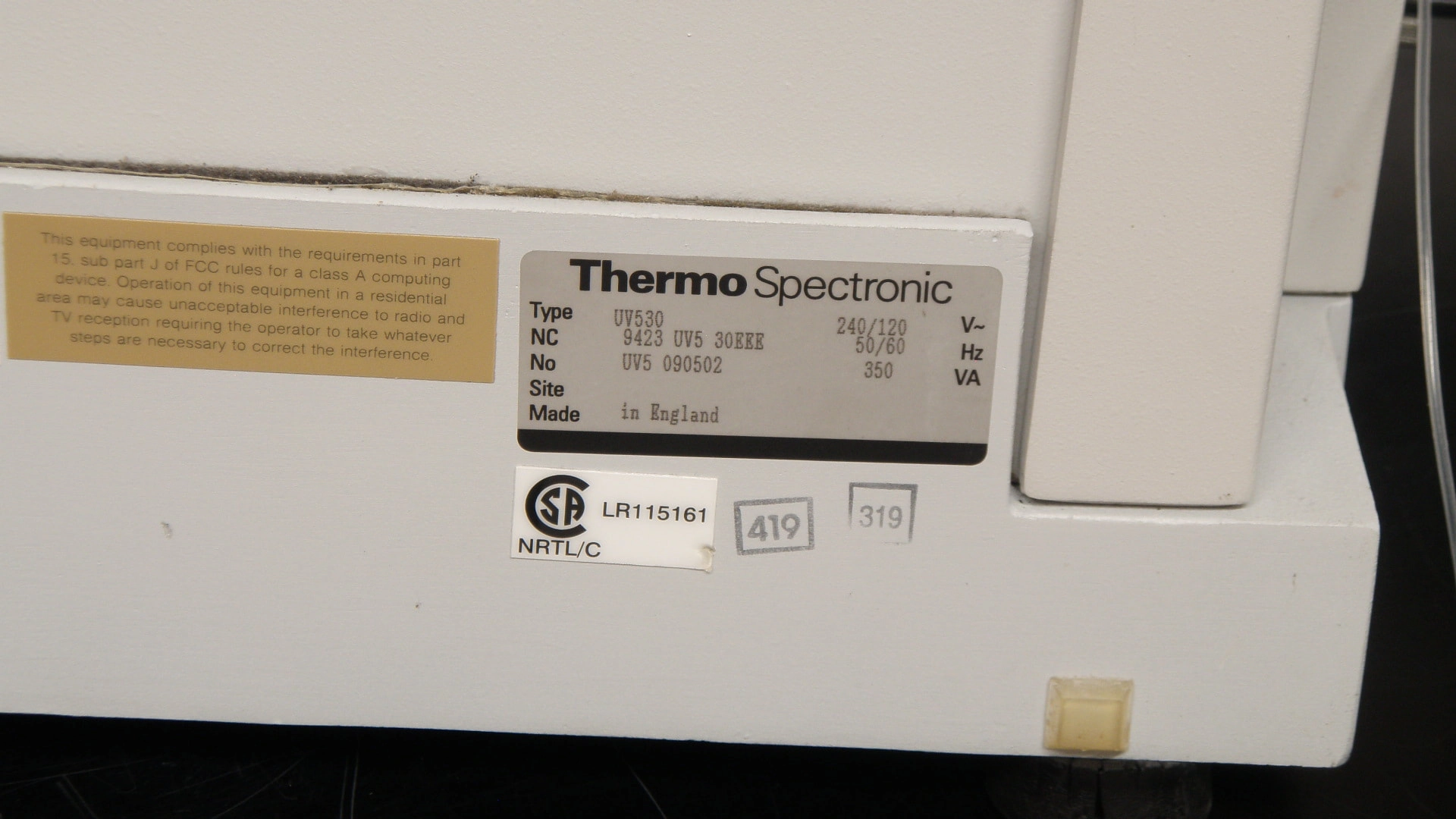 ID# 33604 Thermo UNICAM UV 500 — Этот УФ-спектрометр включается и инициализируется. Мы не смогли заставить ЖК-экран загореться, чтобы протестировать его дальше. Сиппер включается, и мотор вращается.