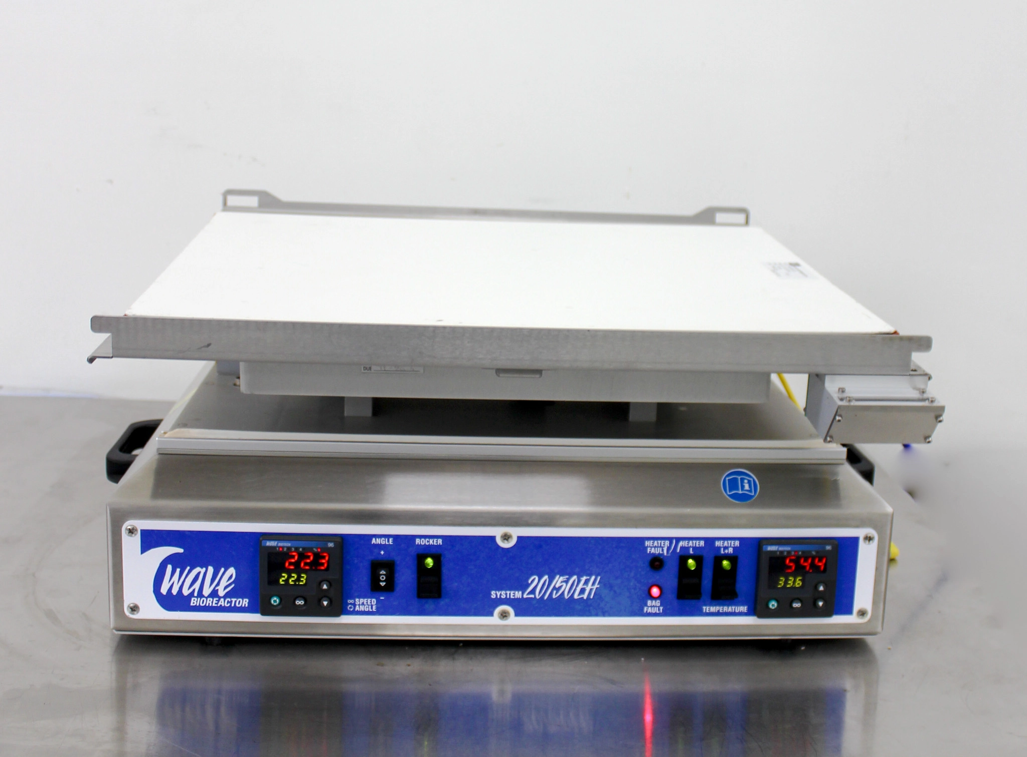Product Information The Wave Bioreactor Platform System 20/50EH by Wave Biotech is specifically designed for flexible cell culturing, protein manufacturing, and vaccine production with its ability to switch tray capacities between 20 and 50 liters. Built for laboratory efficiency, its patented wave cell bags ensure zero cross-contamination. The unit boasts a touch screen controller for adjustable temperature, time, and rocking speed. Although the system has slight cosmetic blemishes due to previous usage, it remains in good working condition, verified by basic functionality tests, and includes a 30-day warranty on parts. The benchtop design ensures easy access and the potential for integration into existing setups. Key Features Flexible tray capacity from 20 to 50 liters Patented wave cell bags for no cross-contamination Touch screen controller for managing temperature, time, and rocking speed Benchtop design for convenient access Rocking rate: 25-40 rocks per minute Temperature range: ambient +10C to 50C Single-use, pre-sterilized cell bag bioreactors Handles culture volumes from 100 mL to 20 L Non-invasive motion and gas transfer Operational safety alerts Specifications Model: WAVE Bioreactor 20/50 Part No.: BASE2050EH Serial No.: 0247.0803.2050EH Dimensions: L:179 mm, W:573 mm, D:46 mm, with holder KIT20EHT: 254x711x575 mm, KIT50EHT: 254x775x700 mm Supply Voltage: 100-120 VAC / 220-240 VAC, 50-60 Hz Power: 630 VA Ingression Protection: IP 20 Fuse Specification: T 4AL, 250V Acoustic Noise Level: < 70 dB A Operational Temperature Range: 0C to 50C Storage Temperature: -40C to +80C Relative Humidity: < 95%, non-condensing Weight Imperial: 43.2 Pounds Metric: 19.6 Kilograms Shipping Dimensions Imperial: 28.8 lb x 26.4 lb x 12.0 lb Metric: 73.15 cm x 67.06 cm x 30.48 cm Harmonized Code 841989 Harmonized Code Details The harmonized code 841989 denotes 'Machinery, plant or laboratory equipment whether or not electrically heated, for the treatment of materials by a proces